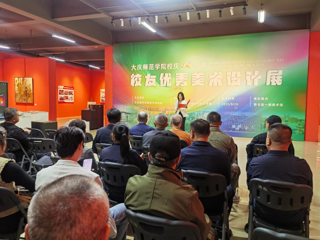 9月20日,大庆师范学院建校60周年校友优秀美术设计展在图书馆开幕。历届校友及美术与设计学院师生近百人参加此次活动,党总支副书记孙琦主持开幕式。