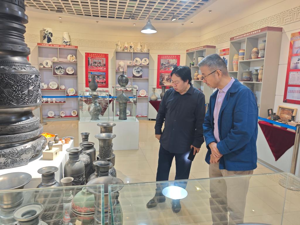 随后,徐勇民教授还参观了大庆师范学院的教学成果展与教师工作室,对该校在地域文化题材创作方面的探索给予肯定。他认为,大庆师范学院依托“石油之都”的地域优势,形成了独具特色的艺术教育方向,建议进一步加强校际合作,推动师生交流学习,拓宽艺术视野。